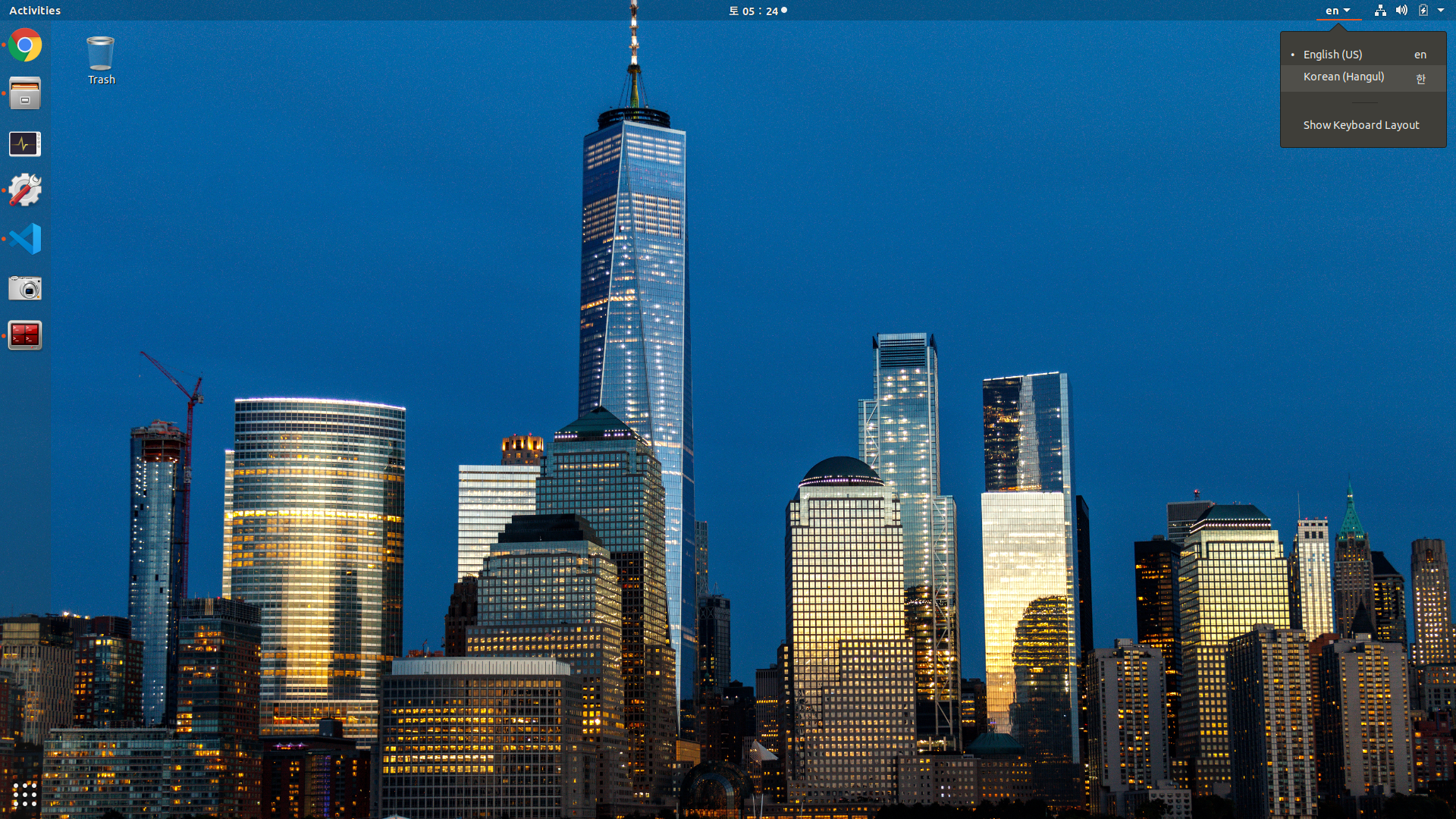 재부팅후 한글이 안바뀐다면 en 클릭 후 Korean(Hangul)선택하시면 됩니다.